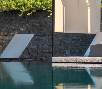 Een minimalistische residentie met een open indeling, hoge plafonds en exclusieve designmeubels. Het infinity-zwembad lijkt samen te smelten met de horizon van de oceaan en geeft een gevoel van oneindigheid.